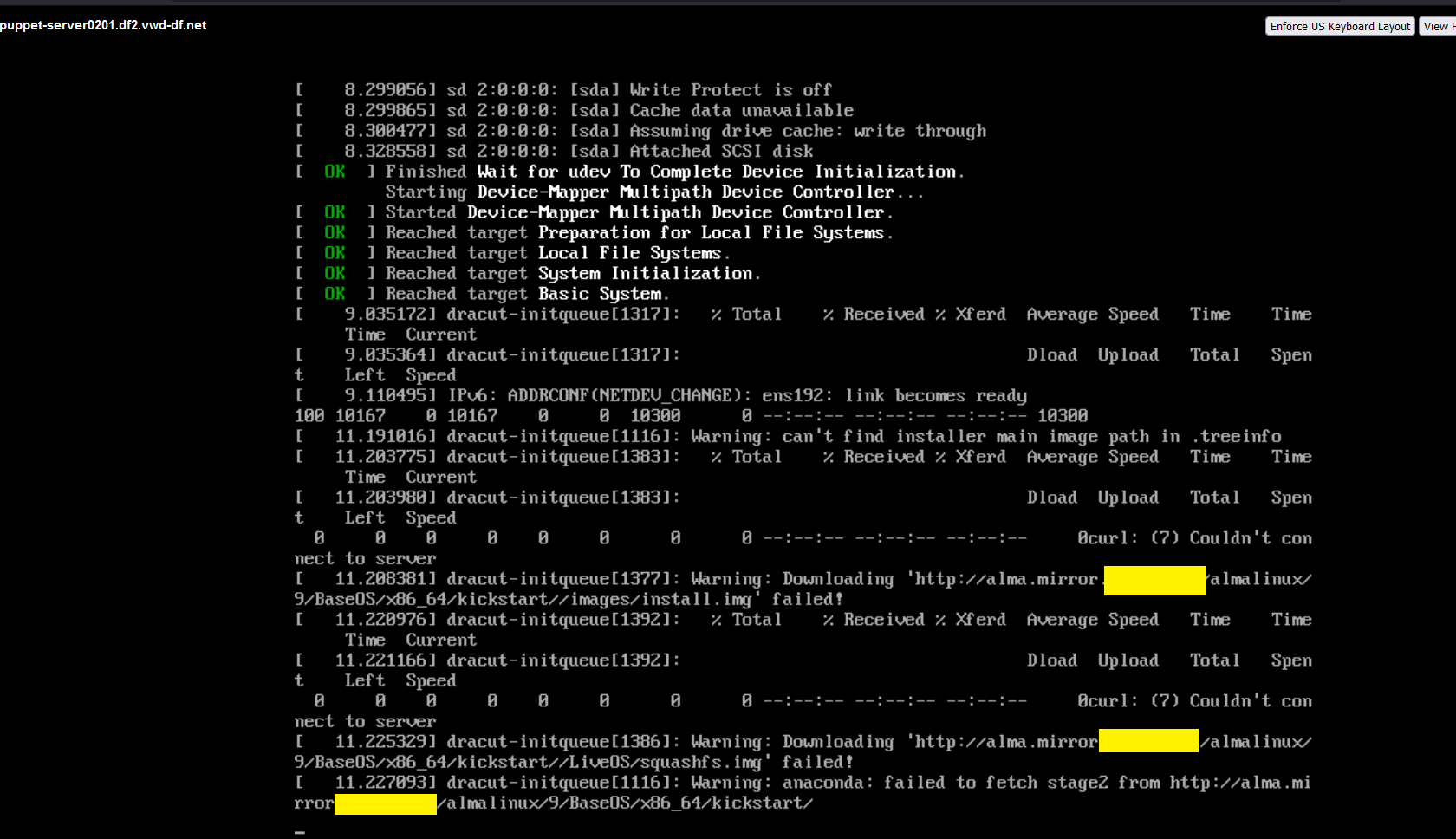 | Steps To Reproduce | have a node that is not allowed to connect to the outside or directly to repo.almalinux.org, but via a proxy. use a or equivalent url from the description and try to install almalinux. try to kickstart install your machine. verify proxy request coming in on the proxy server during kickstart, you won't see. later in the emergency shell try curling the alma repo without -x (should fail), and try it with -x (should succeed) | ||||